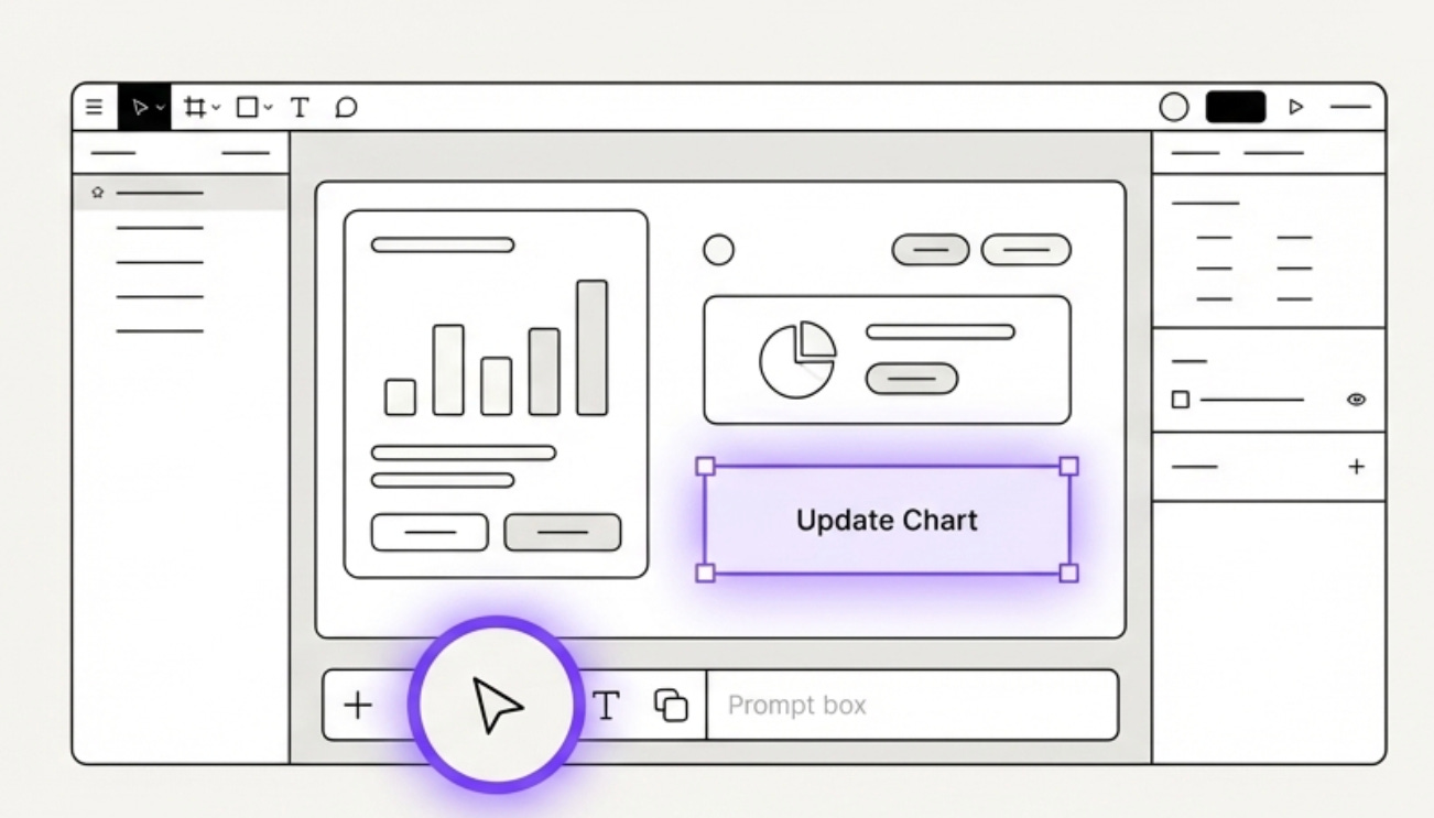 Look for the select arrow icon in the toolbar below the prompt box in whatever tool you are using. This allows users to select a part of the prototyping they are working on.