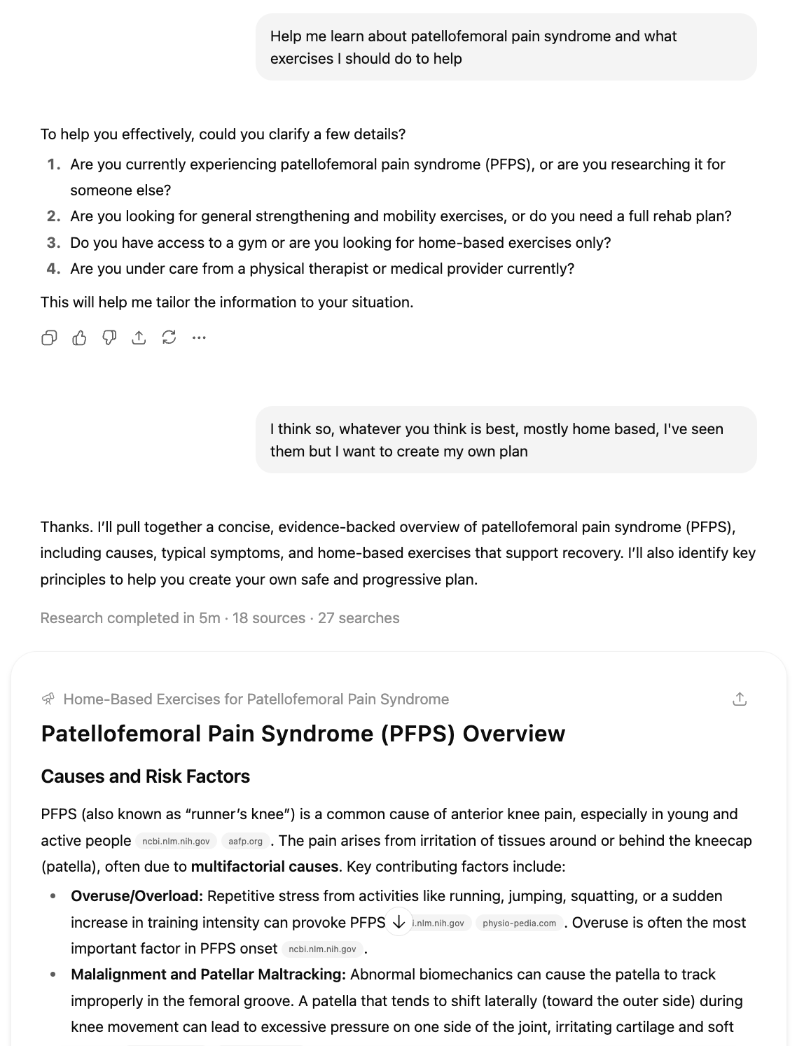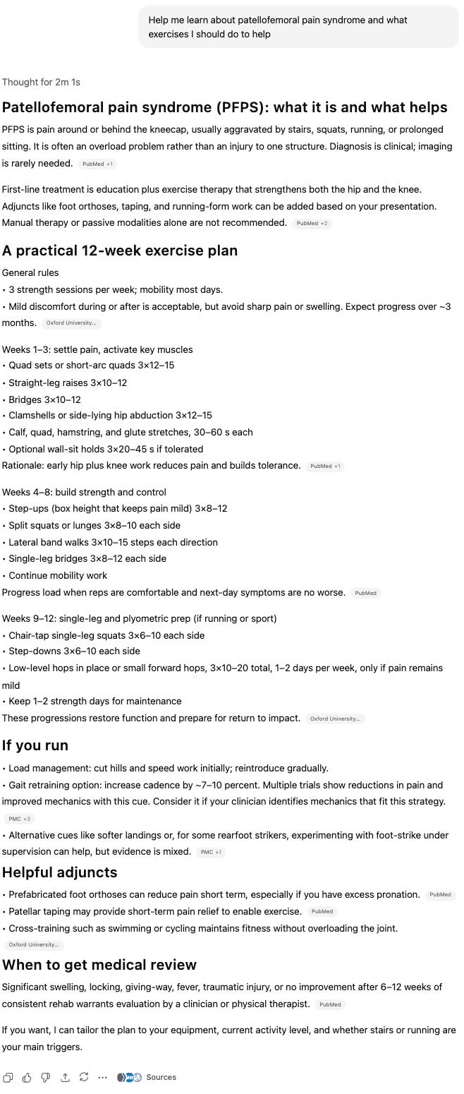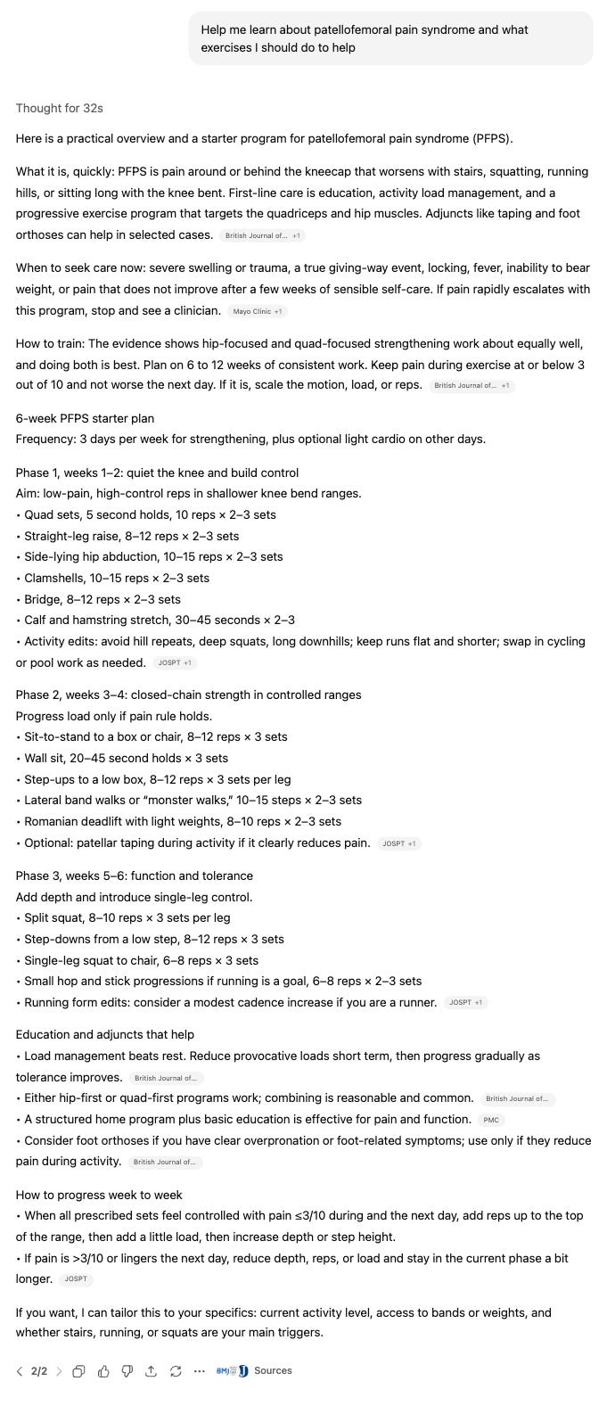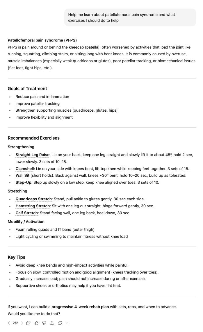 This is a real need I have been seeing a doctor and PT about so I wanted to see how ChatGPT would do.